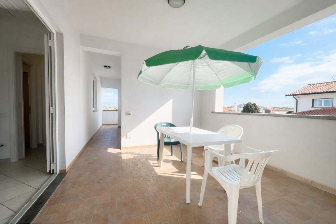 The apartment also features a small private terrace with table and chairs, perfect for enjoying breakfast, relaxing after a day at the beach or spending quiet moments outdoors.