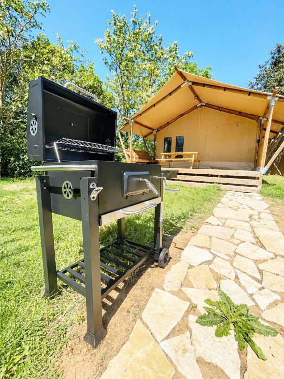 Yes, each 5-person glamping tent has a private barbecue, ideal for outdoor dining with family or friends.