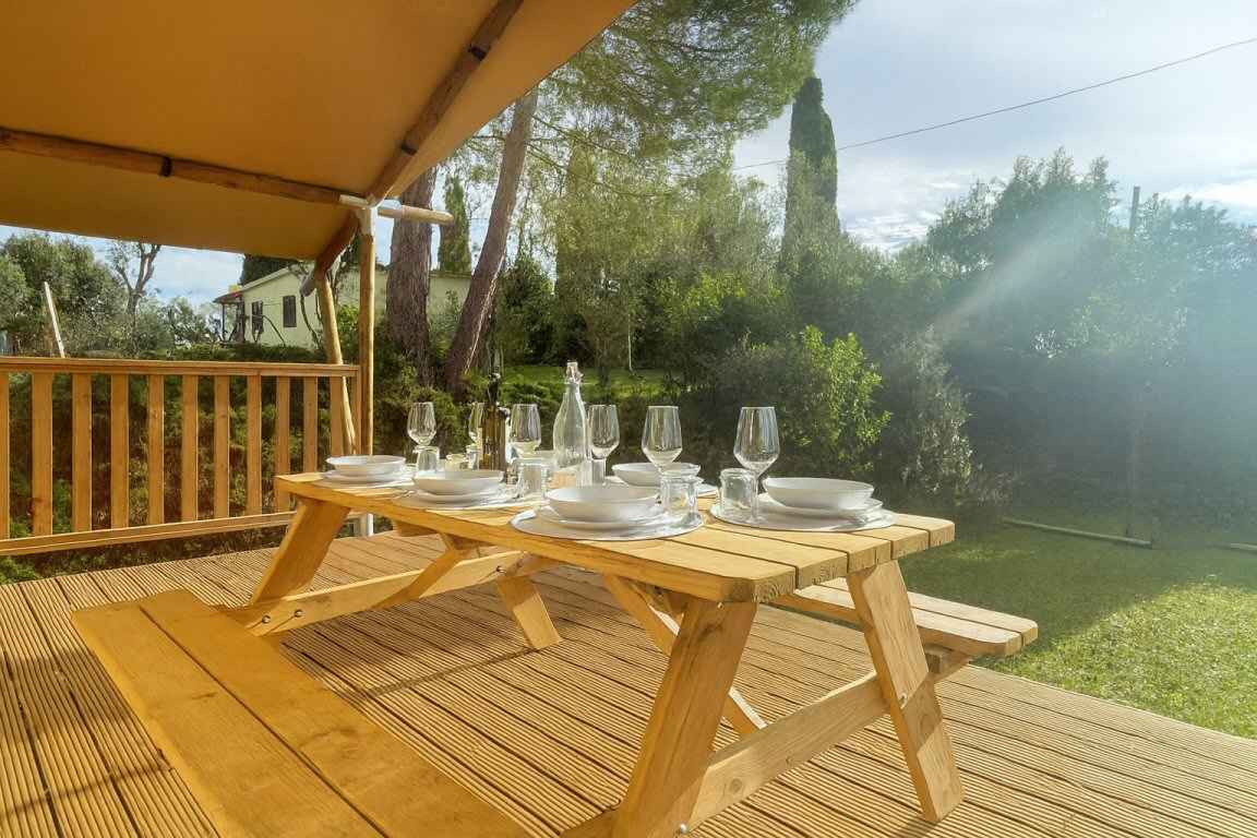 The 5-person glamping tent offers everything you need for a comfortable outdoor holiday in Tuscany.
